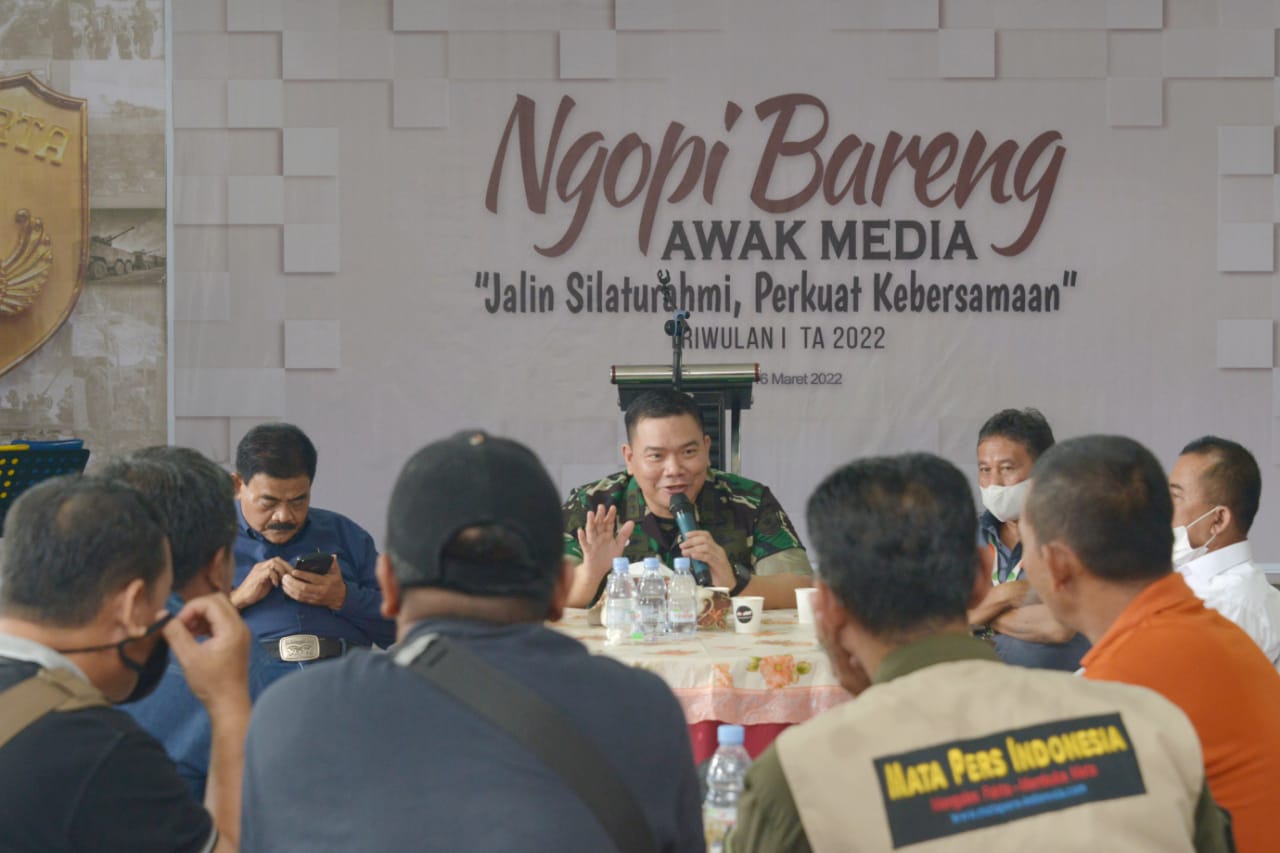 Mengawali acara Ngopi Bareng Awak Media Triwulan I TA 2022 Kapendam Jaya Letkol Cpm Dwi Indra Wirawan memberikan salam Pancasila kepada peserta yang hadir. Dalam sambutannya Kapendam menyampaikan pentingnya kegiatan ini, selain untuk berbagi informasi dan menerima saran masukan tentang kegiatan publikasi juga dapat menpererat jalinan silaturahmi, memperkuat kebersamaan antara insan media dengan Pendam Jaya.