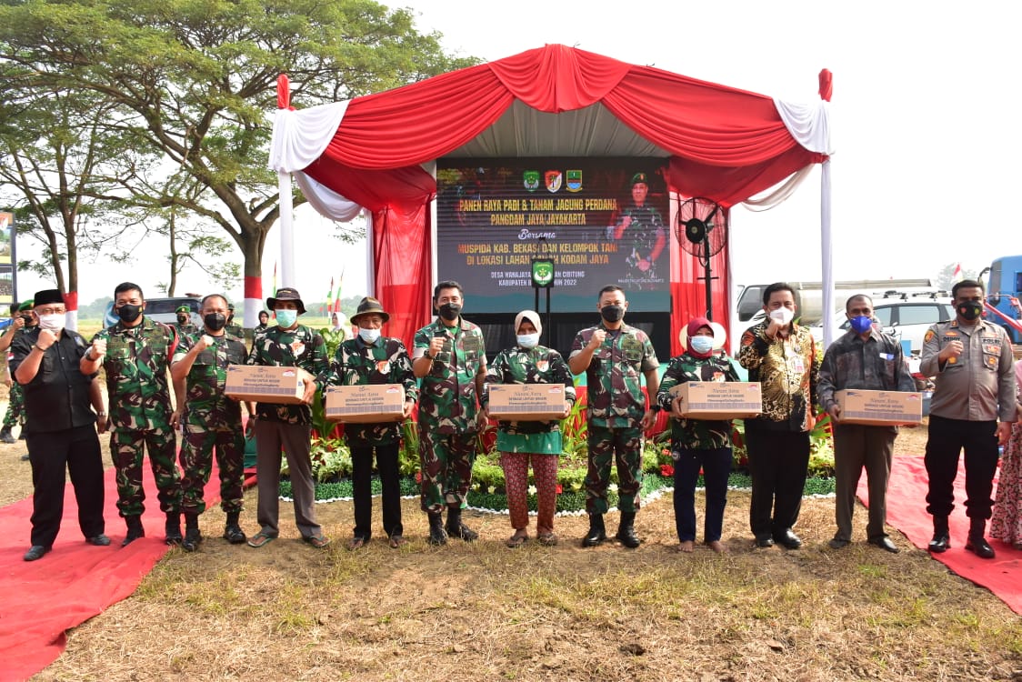 Bersamaan panen raya padi dan penanaman jagung perdana, Pangdam Jaya memberikan bantuan kepada para kelompok tani, selain itu Kodam Jaya melalui Kodim 0509/Kab Bekasi memberikan vaksinasi booster bagi masyarakat sekitarnya guna mendapatkan herd immunity.