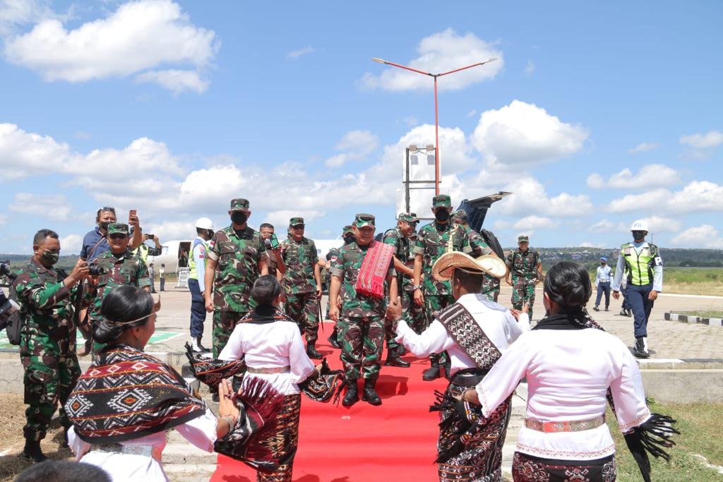 kompassindonesianews.com,Jakarta – Kepala Staf Angkatan Darat (Kasad), Jenderal TNI Dudung Abdurchman, S.E., M.M., disambut tarian Taebenu saat tiba di Bandara El Tari Kupang dalam rangkaian kunjungan kerja di wilayah Kodam IX/Udayana – NTT, Rabu (18/5/2022).