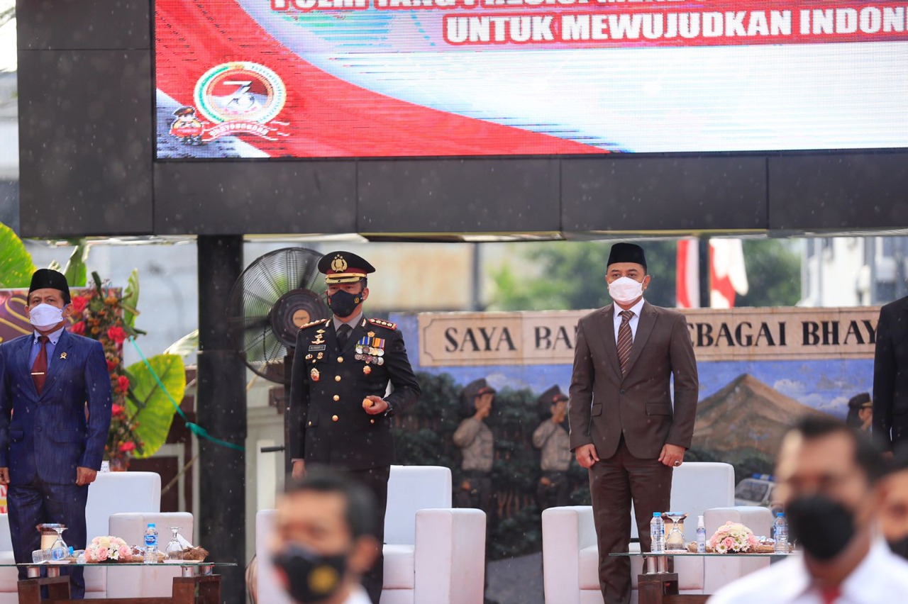 Peringatan HUT Bhayangkara kali ini mengangkat tema “Polri Yang Presisi Mendukung Pemulihan Ekonomi dan Reformasi Struktural Untuk Mewujudkan Indonesia Tangguh – Indonesia Tumbuh’.