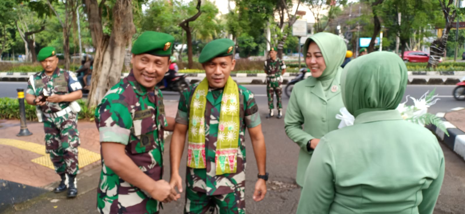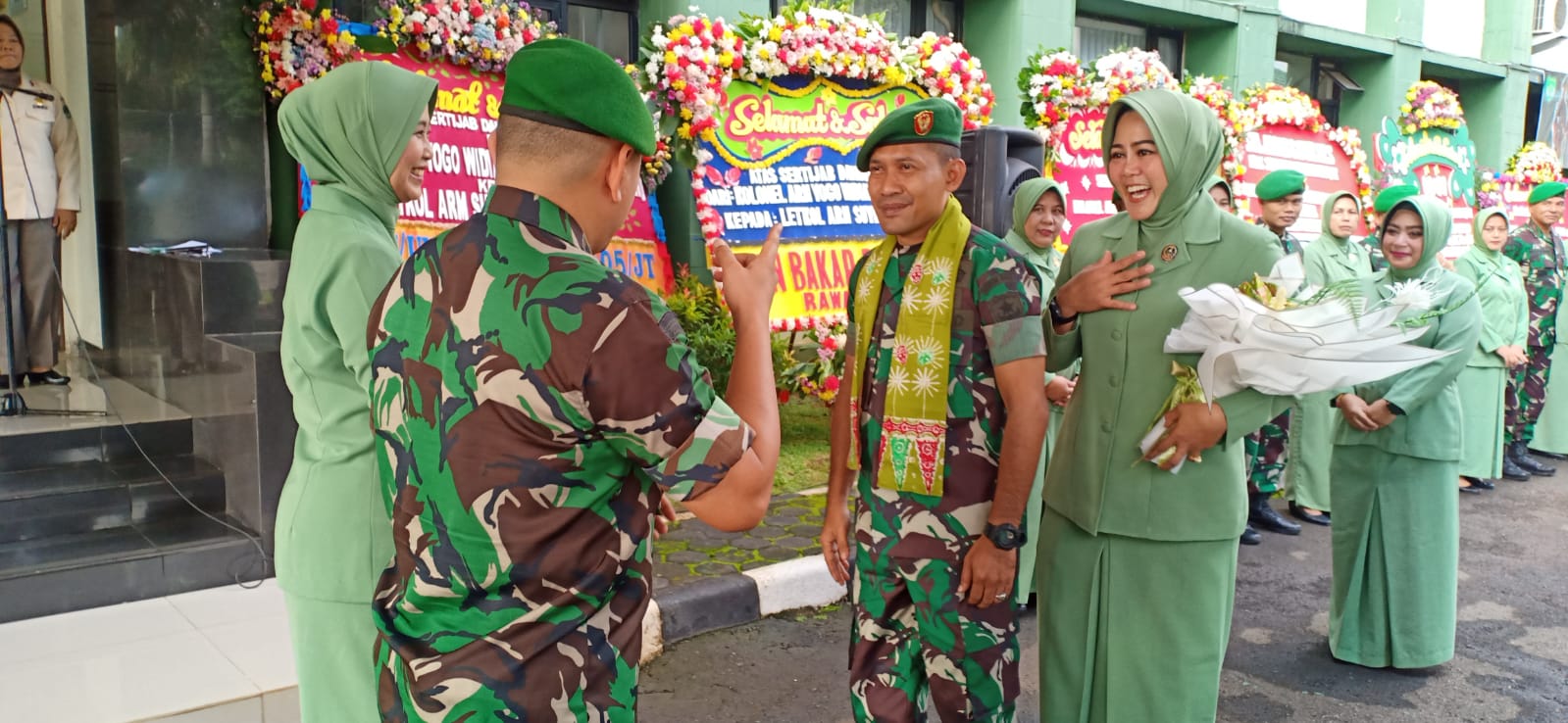 Kegiatan tradisi tersebut diawali dengan penghormatan dan pengalungan bunga di depan Makodim 0505/JT oleh Kasdim 0505/JT Letkol Inf Ali Cahyono, S,Kom,M.Tr (Han) dilanjutkan Dandim baru beserta istri memasuki Makodim dengan disambut oleh seluruh anggota Kodim, baik TNI, PNS dan Persit Kartika Chandra Kirana Cabang XIX Kodim 0505.