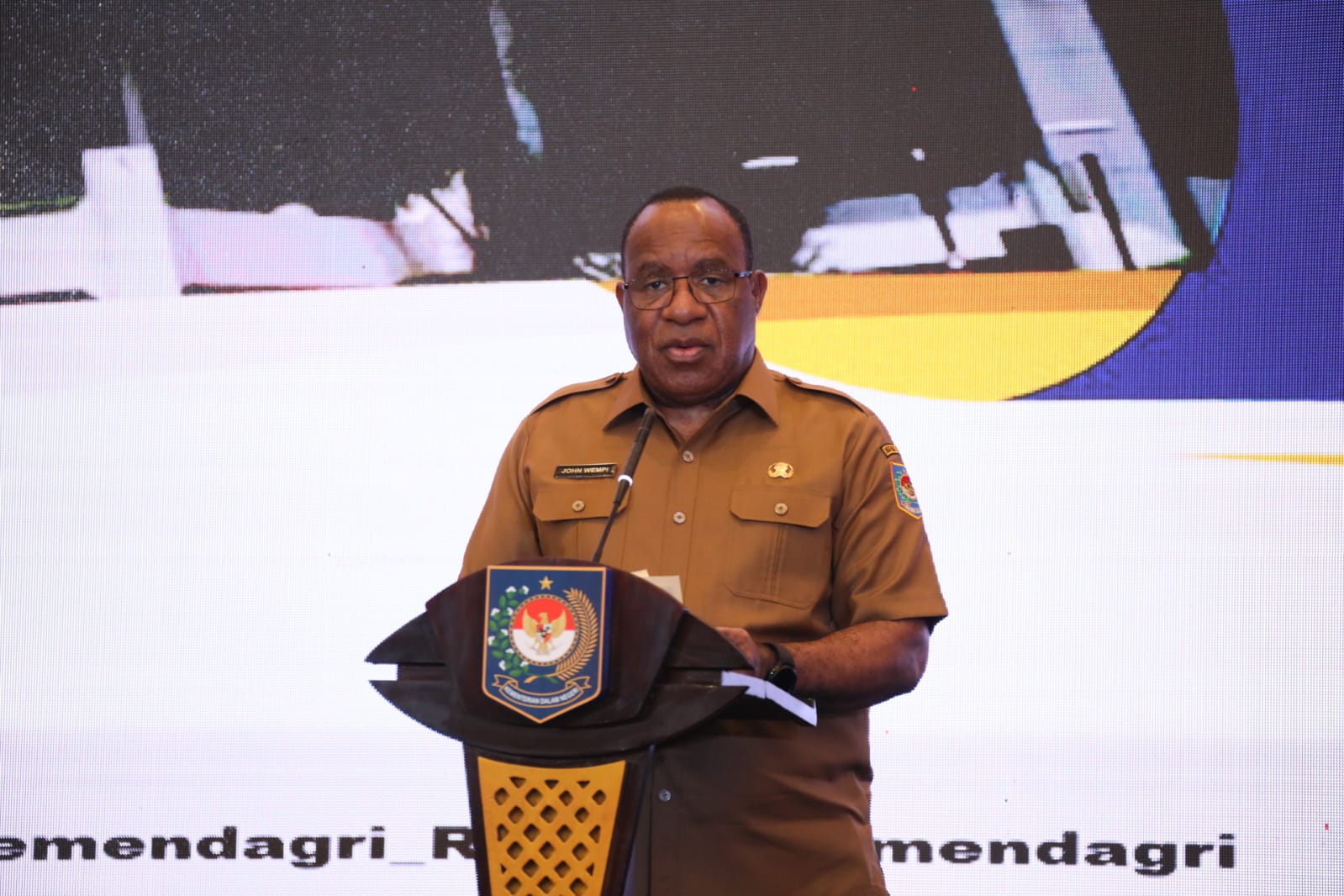 “Kita tentu harus memperhatikan perkembangan berbagai kebijakan dan isu nasional maupun global yang akan mempengaruhi upaya-upaya pencapaian target nasional. Isu- isu yang populer misalnya seperti kondisi inflasi daerah, pelaksanaan Pilkada Serentak Tahun 2024, penyelenggaraan sistem pemerintahan berbasis elektronik (SPBE), hingga penyelenggaraan Standar Pelayanan Minimal (SPM) di daerah,” ujar John Wempi Wetipo.