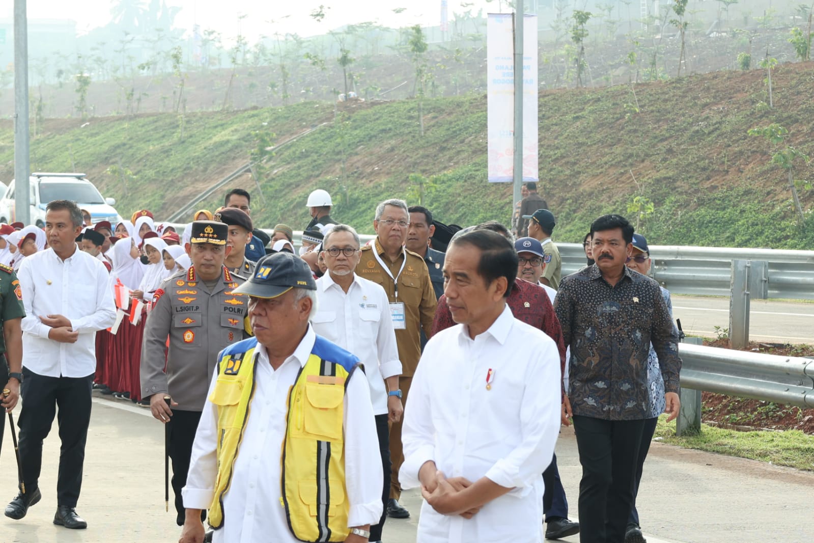 Adapun peresmian digelar di Gate Tol Limo, Utama Depok, Jawa Barat, pada Senin (08/01). Hadir dalam peresmian tersebut Menhub Budi Karya Sumadi, Menteri ATR/BPN Hadi Tiahjanto, Mendag Zulkifli Hasan, Kapolri Jenderal Listyo Sigit Prabowo, Panglima TNI Jenderal Agus Subiyanto, hingga Pj Gubernur Jawa Barat Bey Machmudin.