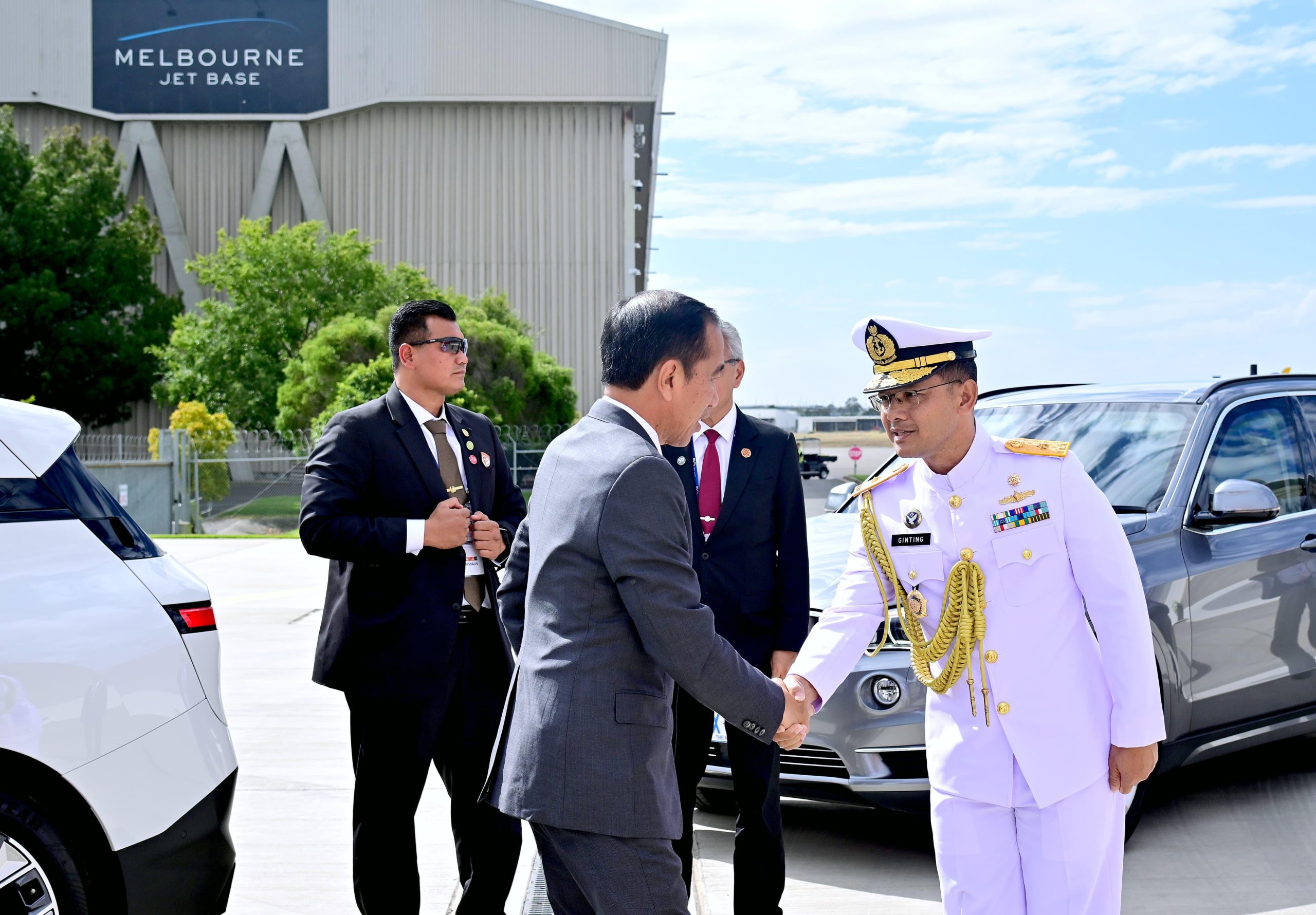 Tampak melepas keberangkatan Presiden di Bandara Melbourne Jet Base adalah Duta Besar Australia untuk Indonesia Penny Williams, Duta Besar Republik Indonesia di Canberra Siswo Pramono, dan Atase Pertahanan RI di Canberra Laksma TNI Yusliandi Ginting.