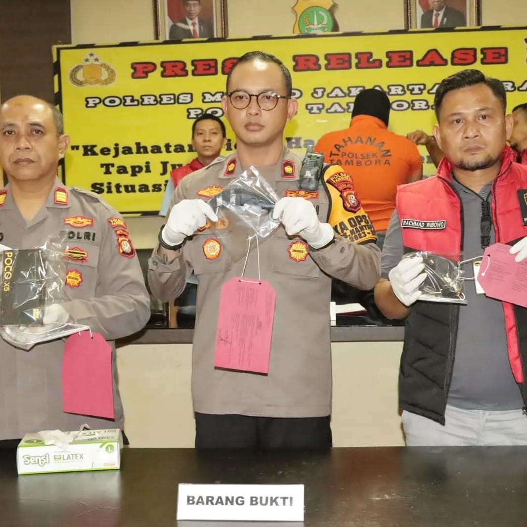 Kapolsek Tambora Polres Metro Jakarta Barat Kompol Donny Agung Harvida didampingi Kanit reskrim AKP Rahmat Wibowo mengatakan modus pencurian pelaku yakni memposting barang melalui Facebook.