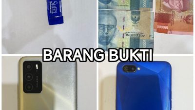 “Kami mengamankan R.E alias RN (20 thn) di duga pelaku mucikari dan RA alias R (27 thn) diduga korban dan barang bukti yang diamankan berupa uang tunai rp 250.000 (dua ratus lima puluh ribu) rupiah, 1 unit hand phone merk Realme 5 model RMX1941 warna biru milik korban RA, 1 unit hand phone merk Oppo A 16 warna silver milik pelaku R.E, 1 buah kondom warna putih telah terpakai dan 1 buah bungkus kondom merk Sutra warna biru telah terbuka,” jelas AKP Joni.