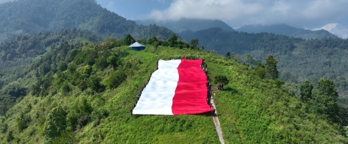 Alhamdulillah hari ini kita kembali dapat memperingati HUT RI dengan cara yang sedikit berbeda. Dengan dibantu kawan-kawan dari penggiat alam dan karang taruna kita berhasil membentangkan bendera merah putih raksasa berukuran 20 meter kali 50 meter di atas Bukit Jukoh Kayu Kambing di ketinggian kurang lebih 900 mdpl,” kata Resmiadi saat dibincangi di sela-sela pembentangan bendera, Sabtu (17/08/2024).