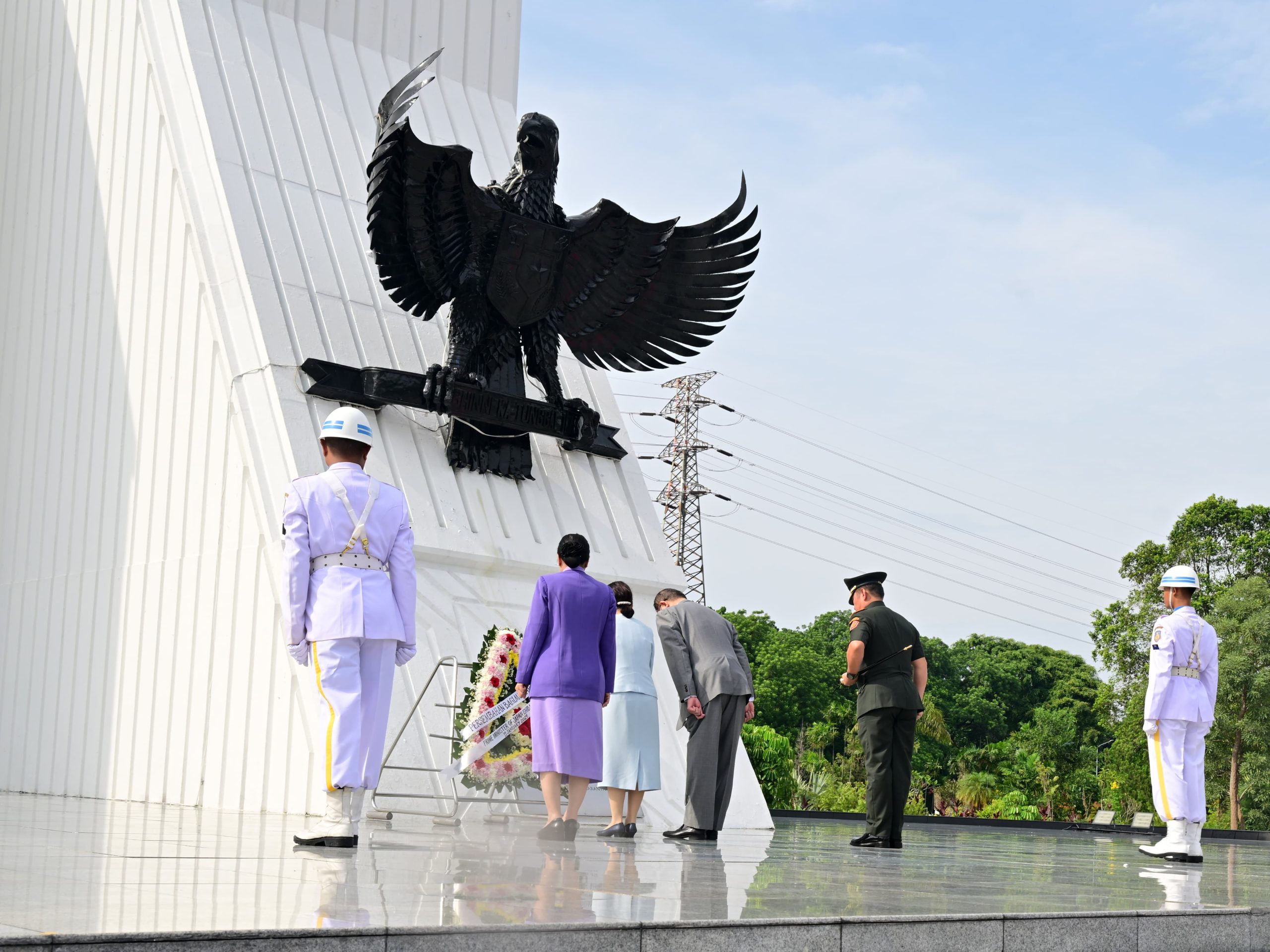 PM Jepang dan istrinya, kemudian membungkukkan badan serta menundukkan kepala untuk memberikan penghormatan kepada para pahlawan Indonesia yang telah gugur. Gestur penghormatan tersebut, menjadi simbol rasa hormat dan persahabatan yang erat antara kedua negara.