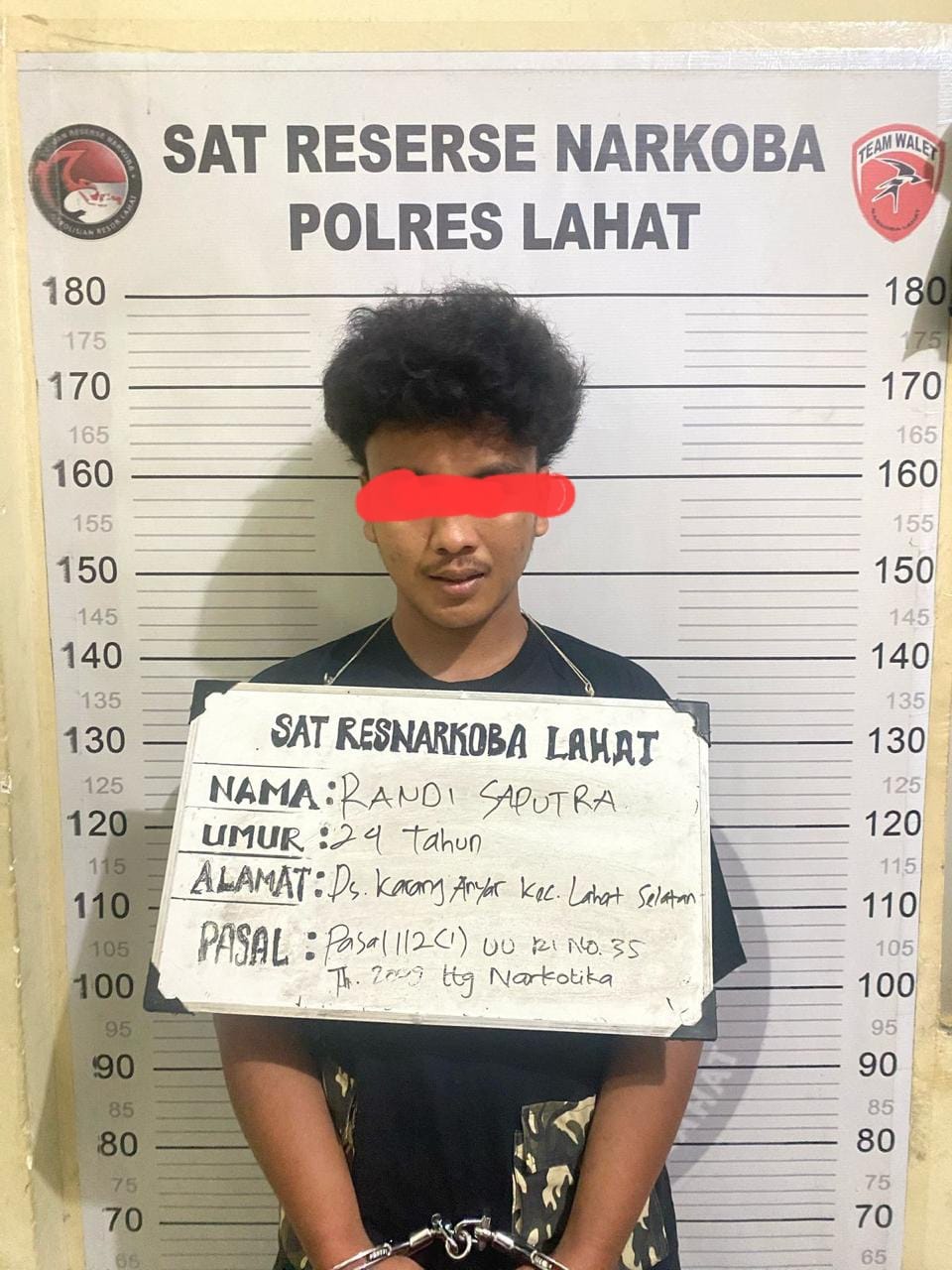 Satres Narkoba Polres lahat melakssnakan penangkapan terhadap pelaku Pada hari Selasa tanggal 25 Maret 2025 sekira jam 04.30 Wib di Rumah milik terduga pelaku tepatnya di Desa Tanjung Tebat Kec. Lahat Selatan Kab. Lahat sering dijadikan tempat transaksi narkotika jenis Shabu, mendapat informasi tersebut Kasat Resnarkoba Polres Lahat memerintahkan anggotanya untuk melakukan penyelidikan dan penangkapan terkait tindak pidana narkotika jenis Shabu tsb, kemudian berhasil diamankan 1 (satu) orang an. RANDI SAPUTRA Bin DANIAR EFFENDI (Alm). Kemudian saat dilakukan pemeriksaan dan penggeledahan terhadap rumah tsb didapatkan barang bukti berup
