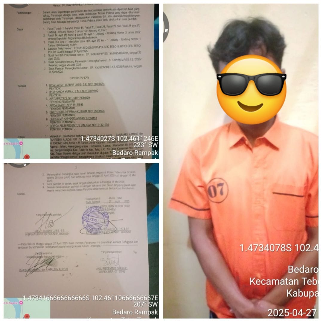 “Alhamdulillah atas laporan masyarakat, tidak sampai 1 x 24 pelaku sudah berhasil kita amankan pada Minggu (27/04) dan sekarang masih di lakukan penahan di sel tahanan Polres Tebo,” ucap Kasat.