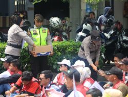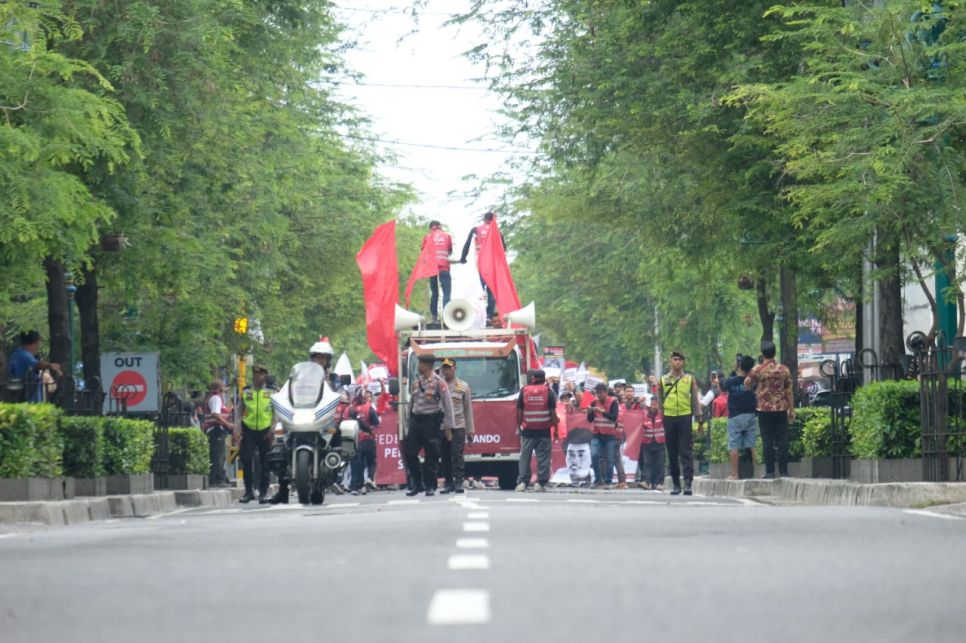 Massa Buruh menyampaikan tuntutan mereka secara damai, menyuarakan aspirasi mengenai kesejahteraan upah layak dan perlindungan tenaga kerja.
