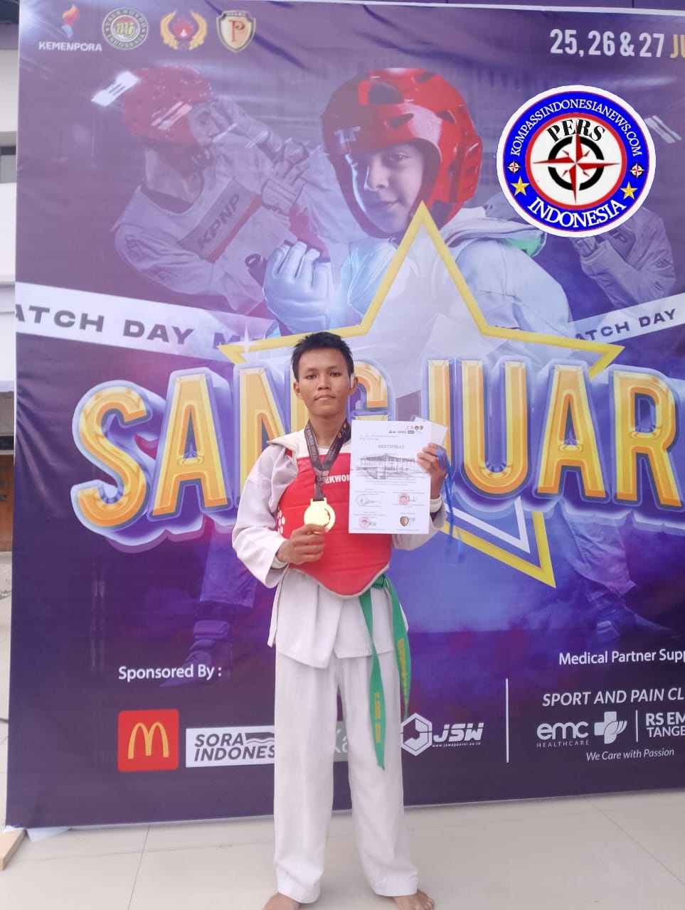 Tangerang.- Kompassindonesianews.com – Melalui kejuaraan Taekwondo tingkat nasional, untuk kali ini Muhammad Ikhfall Izama berhasil meraih Medali Emas dalam perang bintang kejuaraan taekwondo Nasional Grade B pelajar, Mahasiswa dan Umum, yang di adakan di Indoor Stadium Kelapa Dua, Kabupaten Tangerang, yang di selenggarakan pada tanggal 25, 26, 27, Juni 2025, Jumat 27/6/2025.