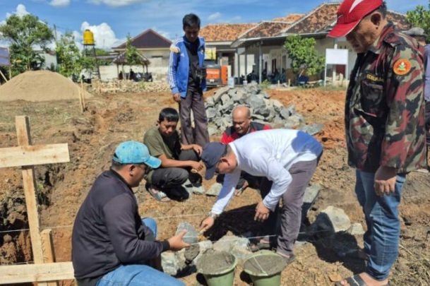 Pembina Angkatan Muda Muhammadiyah (AMM), Dr.Suwardi.SH.MH.CM.CPCLE bersama Ketua Pimpinan Daerah Pemuda Muhammadiyah (PDPM) Lampung Utara (Lampura), Bakri Apriyadi Brades di dampingi Bendahara Nison Mataga lakukan peletakan batu pertama pembangunan Dapur Satuan Layanan Pemenuhan Gizi (SPPG) yang bertempat di Kelurahan Rejosari, Kecamatan Kotabumi Kota, Minggu (20/07/2025).
