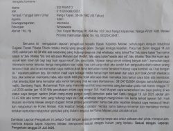 Laporan tersebut telah diterima kepolisian dan tercatat dalam Tanda Bukti Laporan Pengaduan Nomor: TBL/131/VII/2025/RES MELAWI, tertanggal Senin, 21 Juli 2025.