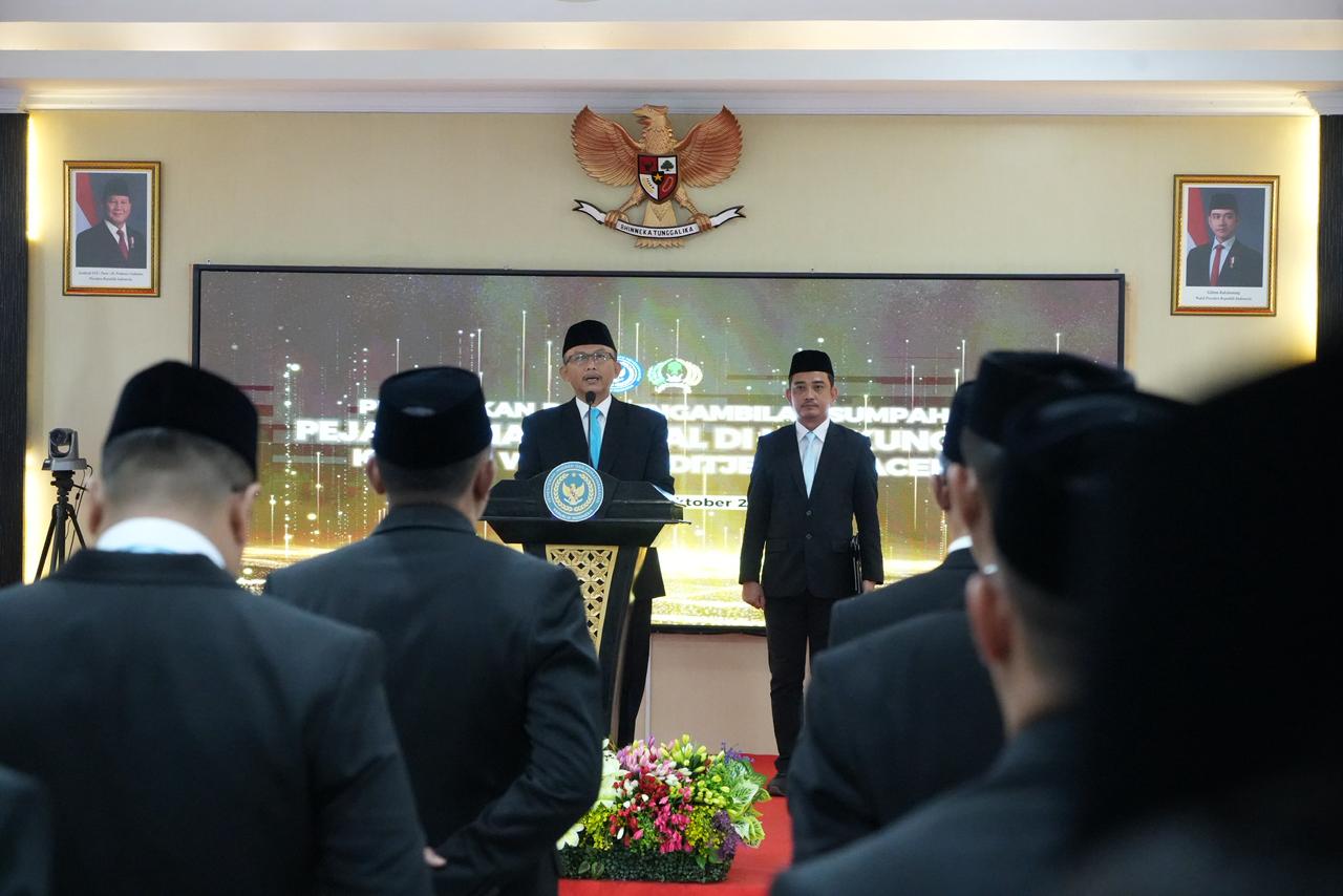 Banda Aceh, Kompasindonesianews – Menindaklanjuti Keputusan Menteri Imigrasi dan Pemasyarakatan Republik Indonesia Nomor M.IP-459.SA.03.03 Tahun 2025 tanggal 12 September 2025 tentang Pemberhentian dari Jabatan Manajerial dan Non Manajerial serta Pengangkatan dalam Jabatan Administrasi di Lingkungan Kementerian Imigrasi dan Pemasyarakatan serta Keputusan Menteri Imigrasi, dan Keputusan Menteri Imigrasi dan Pemasyarakatan Republik Indonesia Nomor M.IP-461.SA.03.03 Tahun 2025 tanggal 16 September 2025 tentang Pemberhentian dan Pengangkatan dari dan dalam Jabatan Manajerial dan Non Manajerial di Lingkungan Kementerian Imigrasi dan Pemasyarakatan, dengan ini Kantor Wilayah Direktorat Jenderal Pemasyarakatan Aceh menggelar acara pelantikan dan pengambilan sumpah jabatan di Aula Bangsal Garuda, jumat (03/10/2025).