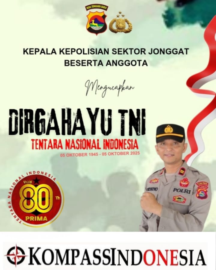 Jonggat, Lombok Tengah KompassIndonesiaNews.Com Dalam rangka memperingati Hari Ulang Tahun ke-80 Tentara Nasional Indonesia (TNI), Kapolsek Jonggat IPTU Agus Priyatno, S.H. bersama seluruh jajaran Polsek Jonggat menyampaikan ucapan selamat dan apresiasi setinggi-tingginya kepada seluruh prajurit TNI di seluruh penjuru tanah air.