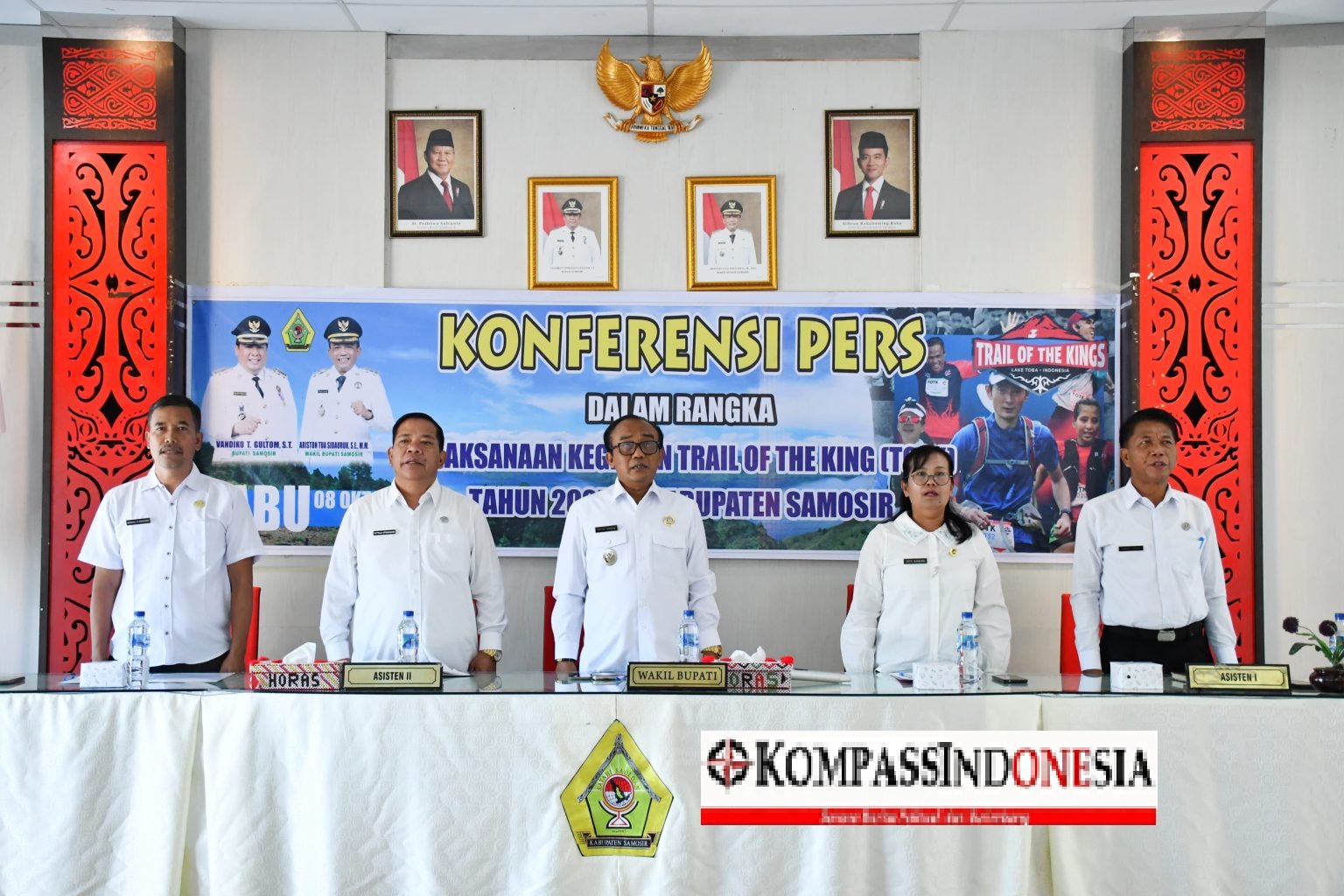 Samosir. Kompassindonesianews.com- Pemerintah Kabupaten Samosir melalui Dinas Komunikasi dan Informatika menggelar Temu Pers Trail Of The King (TOTK) by UTMB dengan wartawan/jurnalis yang bertugas di Wilayah Samosir. Kegiatan yang bertujuan untuk menjalin silaturahmi dan menyampaikan berbagai informasi penting yang berkaitan dengan TOTK dipimpin Wakil Bupati Samosir Ariston Tua Sidauruk di Aula Kantor Bupati Samosir, 08/10.