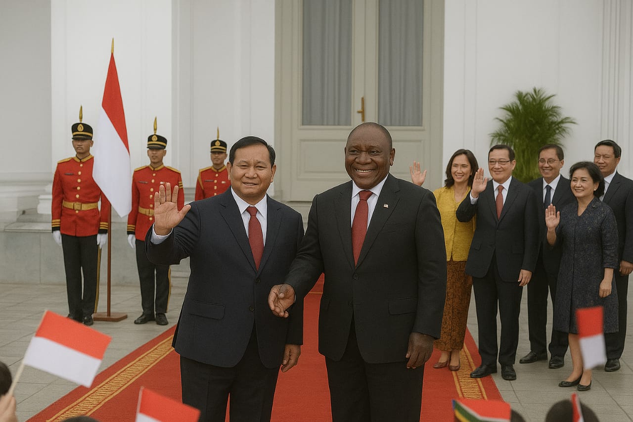 “Kita membuka babak baru hubungan strategis Selatan–Selatan, berbasis kesetaraan dan kemajuan rakyat,” ujar Presiden Ramaphosa (11.00 WIB / 06.00 SAST) dalam konferensi pers bersama di Jakarta.